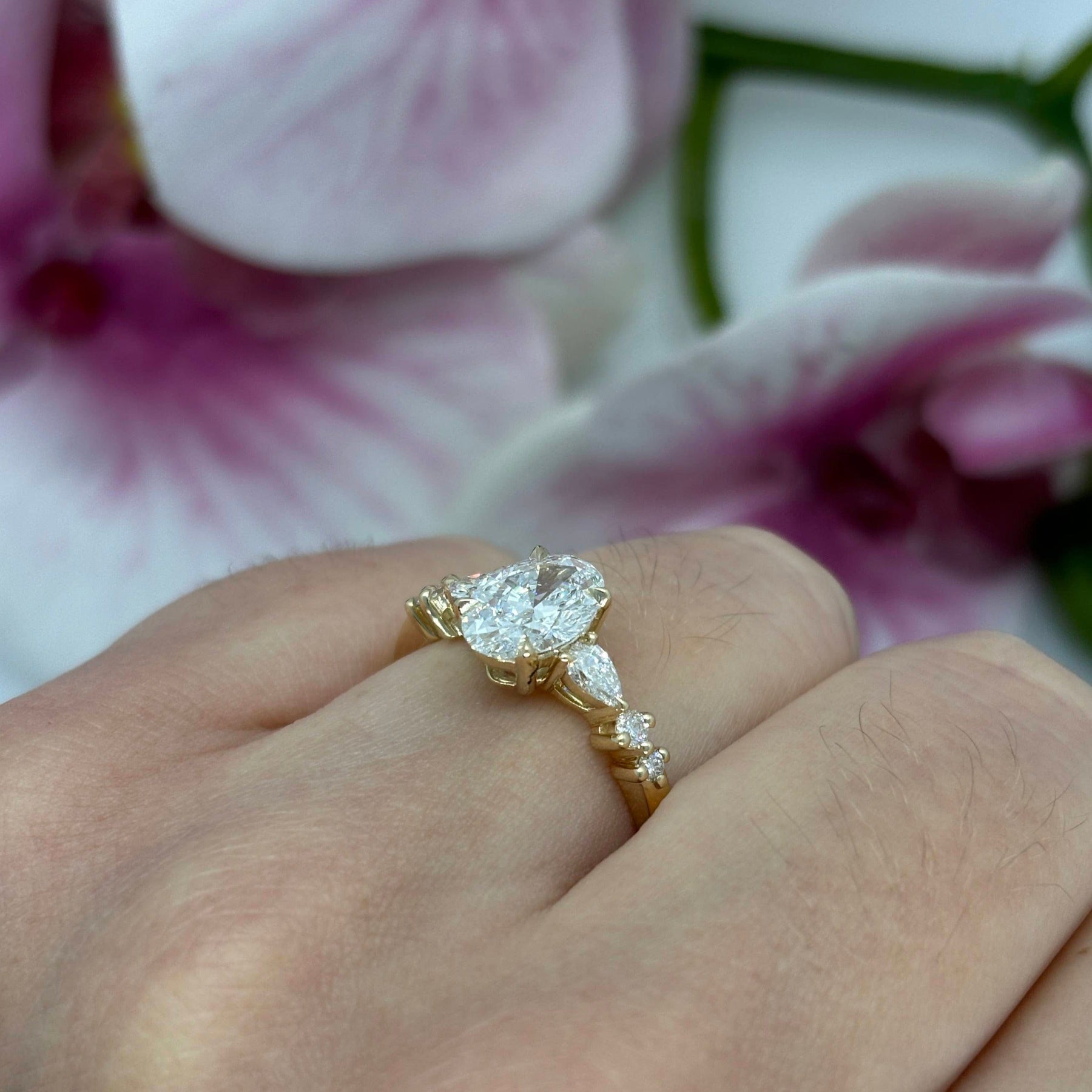 Side Stone: 4x2.5mm Pear Shape Lab-Created Diamonds