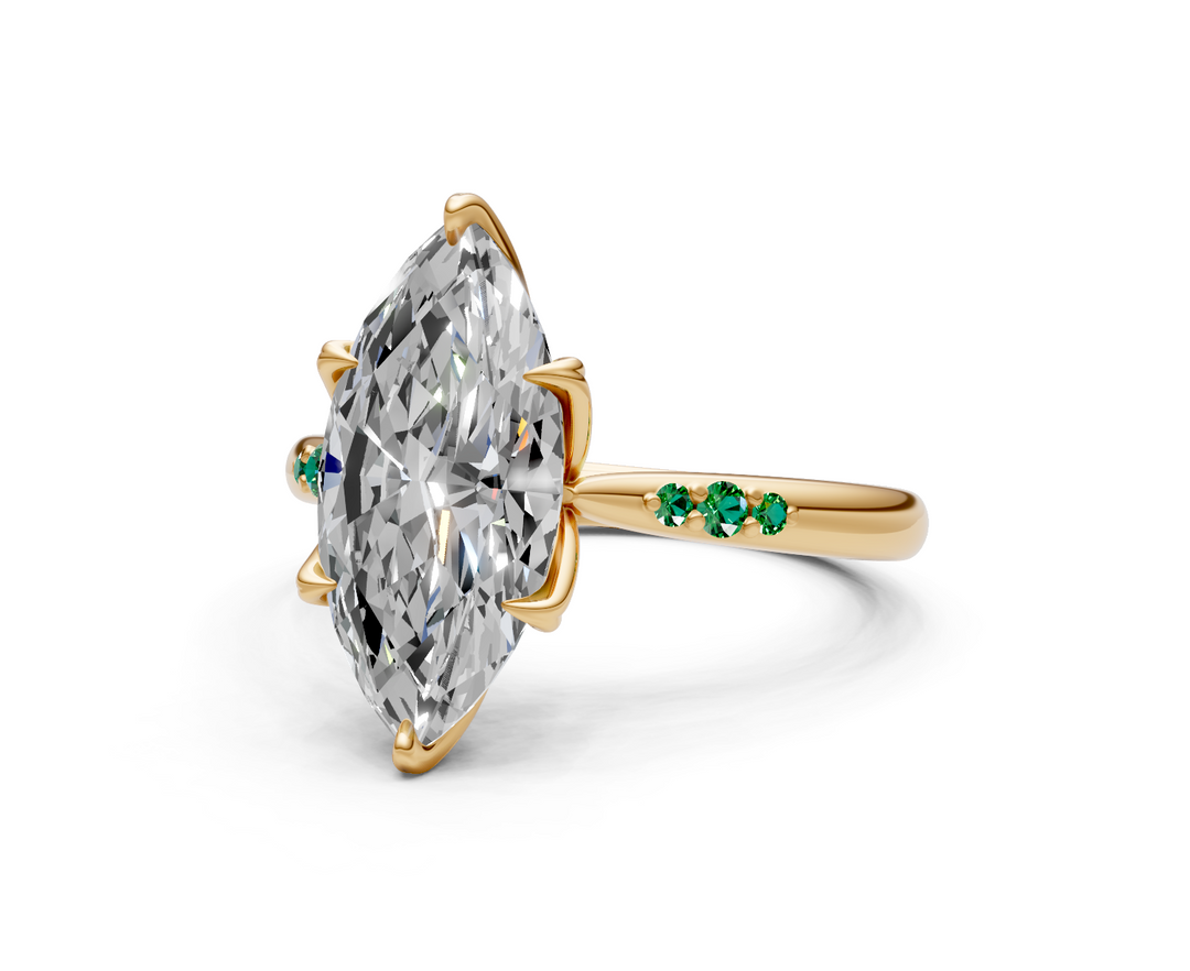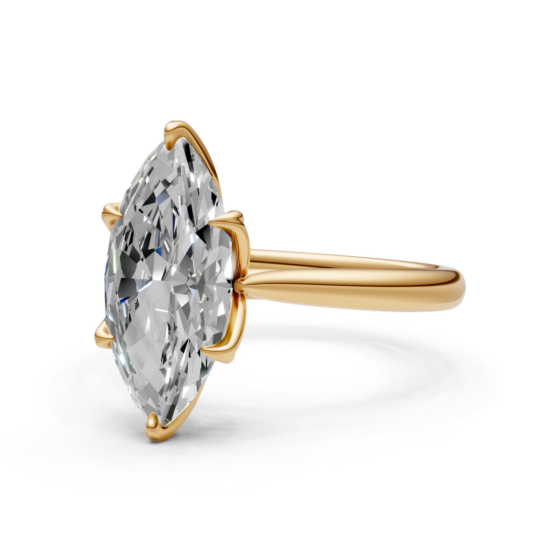 Traditionally, elongated stones (ovals, emeralds, marquise) are set vertically. An East-West setting mounts the stone horizontally across the finger. It is a modern, quirky update to the traditional solitaire that catches the eye and offers a distinct, fashion-forward look.