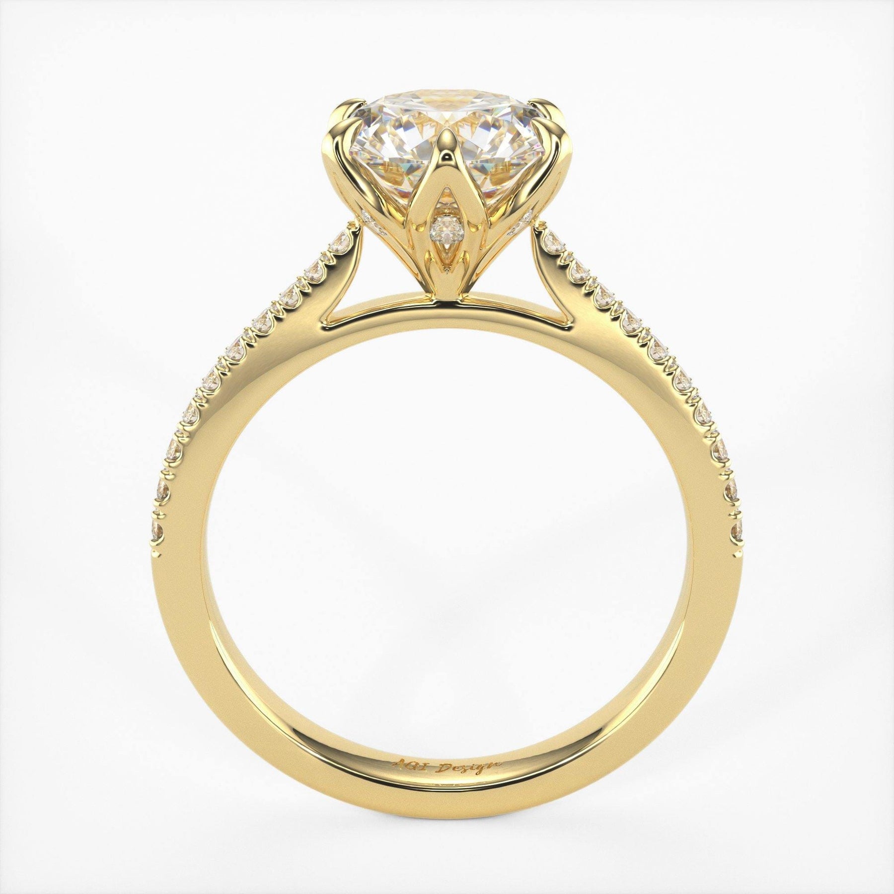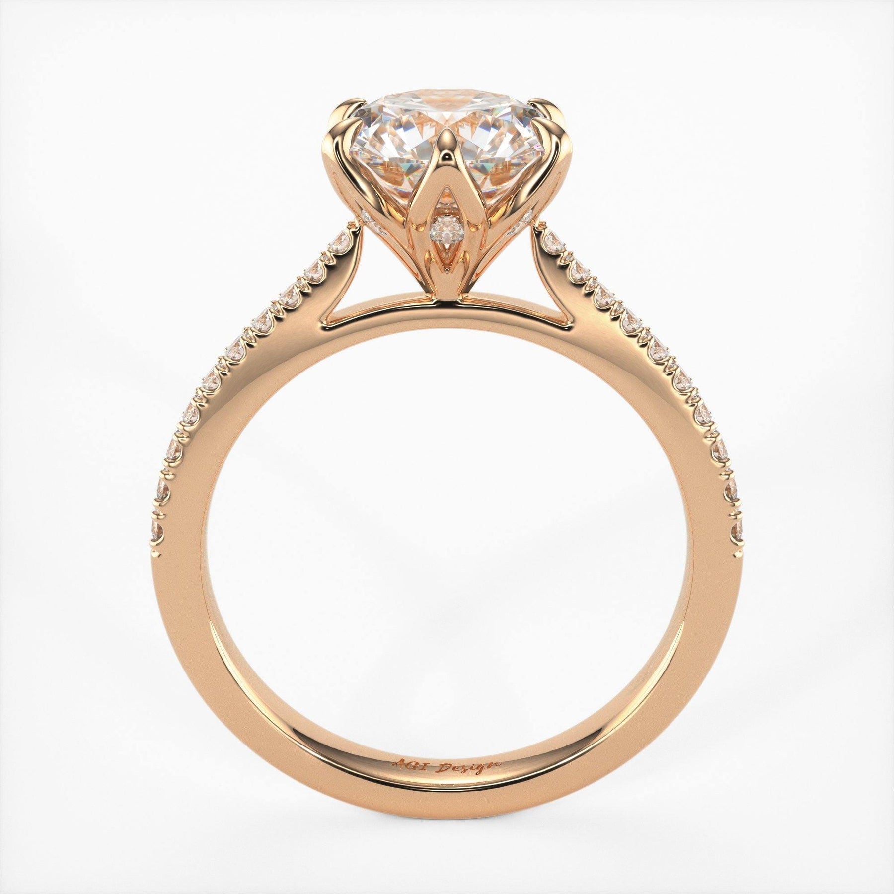 AGIDesignShop Elsa Round Moissanite Tulip Engagement Ring