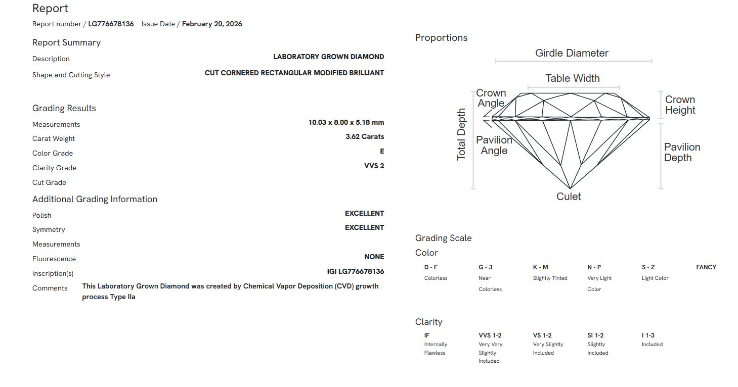 Center Stone: Radiant Lab-Created Diamond